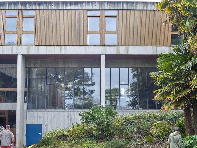 Roland Schweitzer (1925-2018), diplômé des Beaux-Arts en 1953, est architecte-urbaniste. Son travail s'inspire des architectures japonaises et nordiques. On trouve dans ses différents projets et réalisations une articulation entre unités répétitives et espaces collectifs, fragmentations et superpositions des volumes où l'horizontalité est structurée par des systèmes de galeries tout en laissant une place centrale à la végétation. On retrouve dans son travail les influences de Le Corbusier, Jean Prouvé, Ludwig Mies Van der Rohe ou Marcel Beuer.