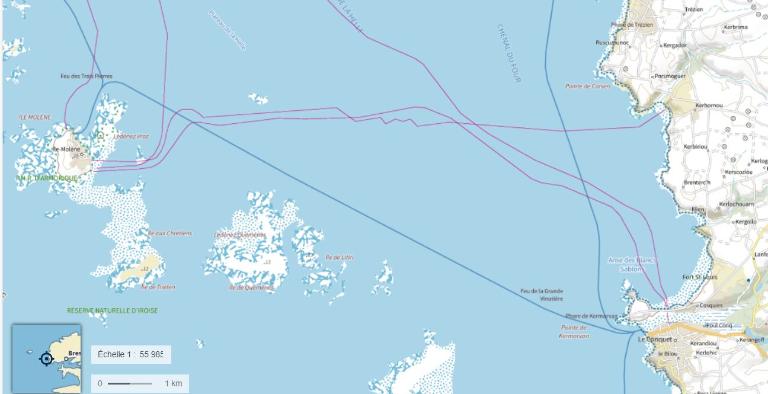 Le port du Conquet est le port régional continental situé le plus à l'ouest de la Bretagne. La ria qui l'accueille est orientée Ouest-Est. La zone de navigation est plutôt périlleuse. A proximité du chenal du Four, le port du Conquet voit son chenal d'accès compliqué par les roches de la grande et de la petite Vinotière (tourelle sur la grande Vinotière), la Normande et, au sud, la basse des Renards (bouée et tourelle).