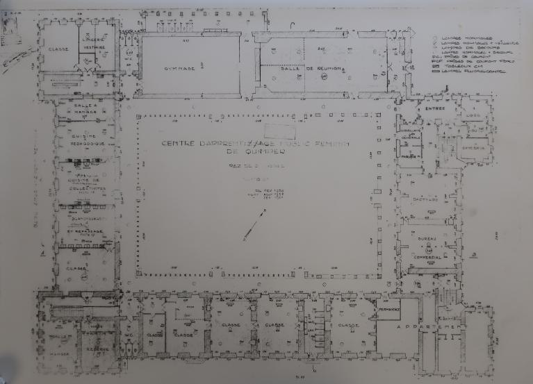Plan du rez-de-chaussée _Centre d'apprentissage féminin de Quimper _ Jacques Lachaud-architecte _ 1953 - 1960 _ AM Quimper - NC :