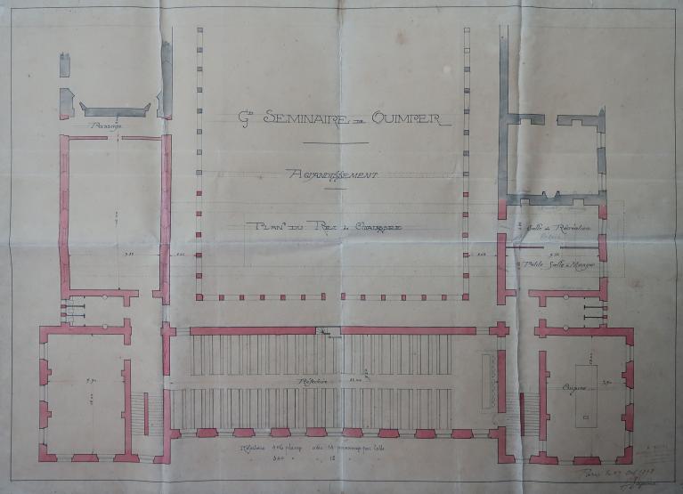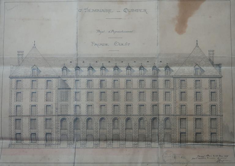 La très riche documentation des archives diocésaines de Quimper, des archives municipales et de celles du Conseil régional de Bretagne permet de reconstituer l'évolution du bâti et de l'occupation des quatre ailes, depuis les années 1850.