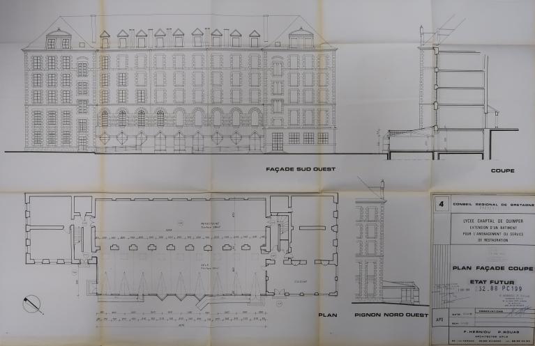 Région Bretagne (Service des archives) : 899 W 189. Lycée Chaptal, Quimper. Permis de construire. 1990