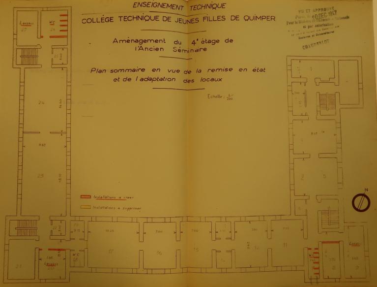 Plan du 1er étage _Centre d'apprentissage féminin de Quimper _ Jacques Lachaud-architecte _ 1953 - 1960 _ AM Quimper - NC :