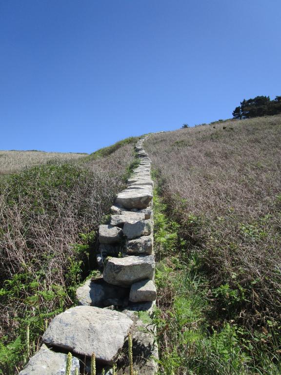 Précisons que l’alignement de gros blocs de granite visible sur le côté est de la route du phare a été réalisé dans les années 1970 par un particulier, alors propriétaire du moulin à eau, qui souhaitait délimiter son terrain. Les pierres proviennent de parcelles de lande situées de l’autre côté de la route.