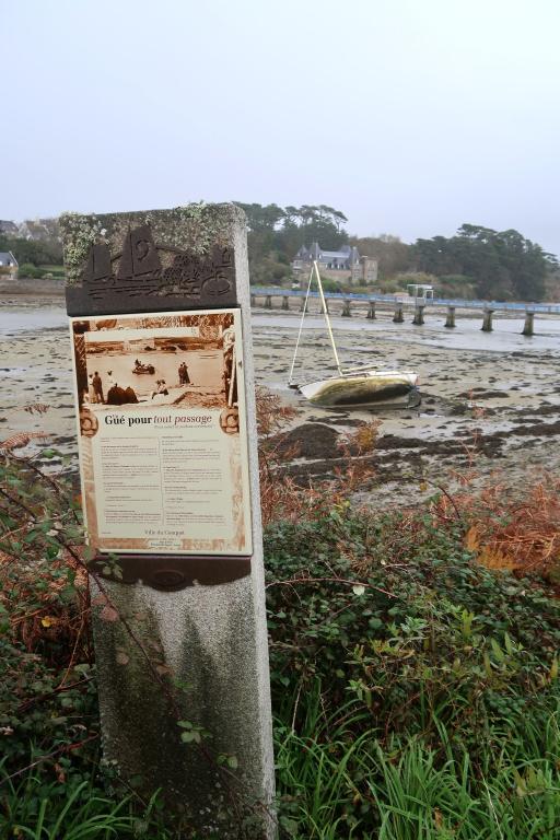 Passerelle construite durant la Seconde Guerre mondiale lors de l'occupation allemande. Elle se situe là où auparavant, et depuis plusieurs siècles, se trouvait un gué composé pour partie de dalles de pierre ; gué que l'on traversait à pieds. Un bac, avec passeur, est instauré en 1864. D'abord en bois, la passerelle est depuis les années 1950 en béton. Elle permet de relier la ville à la presqu'île de Kermorvan. Autant utilisée par les habitants que par les promeneurs, elle est un axe important de la commune du Conquet.