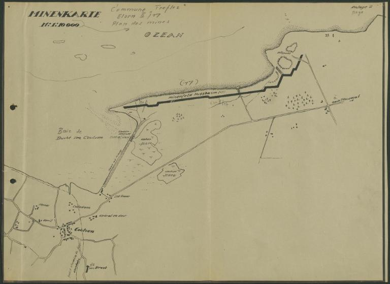 Posés d’octobre 1942 à mars 1943, des champs de mines permanents interdisent la traversée des dunes entre les ensembles fortifiés. Ils sont connus par les archives allemandes de minage conservés par les Archives départementales du Finistère. Les mines sont implantées, entre le trait de côte et le fossé antichar, juste derrière les dunes. On comptabilise ainsi au moins 4 740 mines réparties dans cinq champs de mines numérotés "Elorn II/17" - "Nussbaum" (noyer) et "Elorn II/30" - "Linde" (tilleul), "Eiche" (chêne), "Birke" (bouleau) et "Ahorn" (érable). Il s’agit d’engins de type S. Minen, "S" étant l’abréviation de Schrapnellminee, mines antipersonnel à éclats dites aussi mines bondissantes.