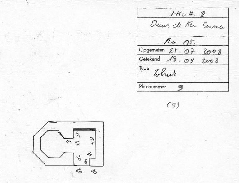 Bunker-poste d’observation et de tir en béton armé, de type 58c (80 cm Ringstand - 8-eckig, octogonal). Implanté à l'ouest du bunker-abri de type VF 1a pour 6 soldats, il est quasiment invisible dans les dunes. Son poste de tir de 0,8 m de diamètre permet de tirer dans toutes les directions.