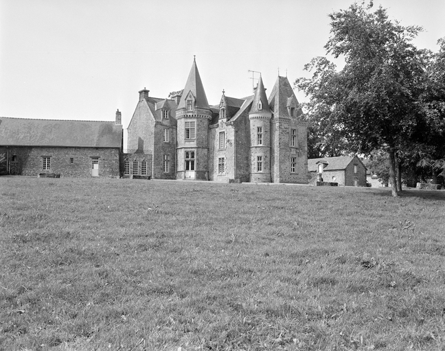 La façade postérieure de l'ancien manoir du 16e siècle est devenue à la fin du 19e siècle la façade principale d'un nouveau logis castellisé et enrichi de lucarnes, tourelles et pavillons.