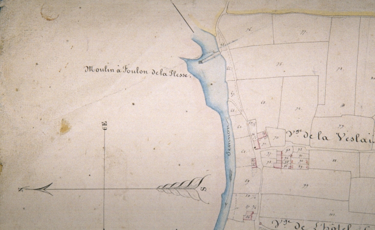 Moulin de la Pile, plan parcellaire, AD Ille-et-Vilaine 7S 17. Fonds préfecture. Service hydraulique, réglementation (18 février 1876).