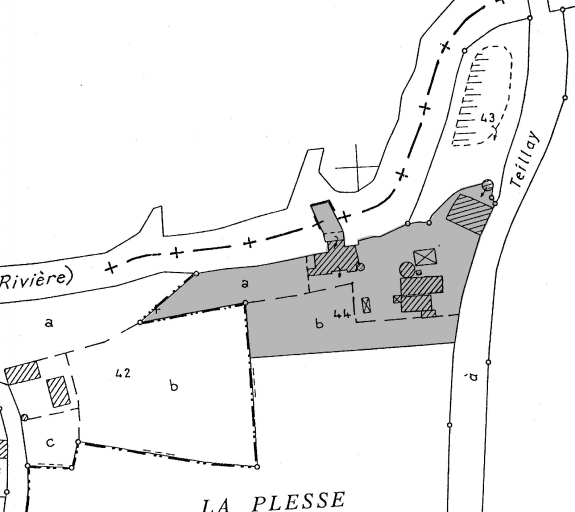 Appellationsmoulin à foulon de la Plesse, puis moulin à farine de la Plesse, actuellement minoterie Prunault