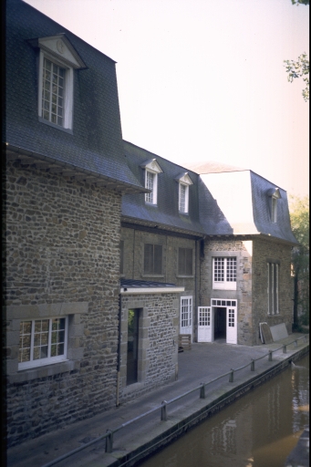 Site longé par la rivière du Nançon. L'édifice, abritant à la fois les bureaux et une partie de l'atelier de fabrication, se compose de trois corps de bâtiment qui forme un plan en U. Construit en schiste, il compte un étage carré et un étage de comble couvert, pour le corps de bâtiment principal, d'un toit à longs pans brisés à égout retroussé, et pour les deux petits corps de bâtiment transversaux, en retour d'équerre sur la façade postérieure, de toits brisés en pavillon à égout retroussé, en ardoises. Dans son prolongement se situe la seconde partie de l'atelier de fabrication, construction plus récente en béton armé enduit, à un étage carré couvert d'un toit à longs pans en ardoises. Les entrepôts et magasins industriels consistent en des structures plus légères avec essentage de tôle et couverture à longs pans en ardoises ou en métal.