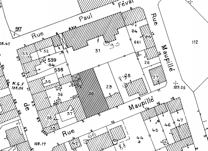 Propriété Brière rue de Nantes, plan, AM Fougères 5J 2-21. Hygiène et santé. Plans de maisons particulières dressés par le bureau d'hygiène (1918).