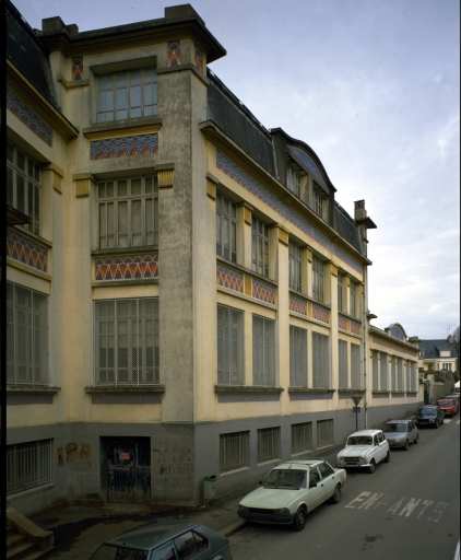Etablissement composé d'un grand corps de bâtiment principal, l'atelier de fabrication et les bureaux, à un étage de soubassement, un rez-de-chaussée surélevé, un étage carré et un étage de comble, puis d'un second corps de bâtiment, qui abrite le générateur, à un étage de soubassement et un rez-de-chaussée surélevé. L'atelier de fabrication, construit en béton armé enduit, couvert de sheds et d'une croupe brisée en ardoises, est flanqué d'une tour d'angle dans-oeuvre, qui domine l'ensemble du bâtiment et qui est couverte d'un toit en terrasse. La composition architecturale présente des rythmes verticaux : travées, décrochements, décors de pilastres cannelés, et horizontaux : bandeaux, corniches, tympans et frontons, mais aussi de nombreux décors en mosaïque (abstraits tels que des frises, et porteurs de sens tels que les coqs en référence à la marque déposée). Le bâtiment du générateur, moins ostentatoire, présente toutefois, comparé à sa fonction, un aspect assez monumental avec une façade soulignée par une travée centrale plus élevée, surplombant ainsi le reste du bâtiment ; il est couvert d'un toit en terrasse.
