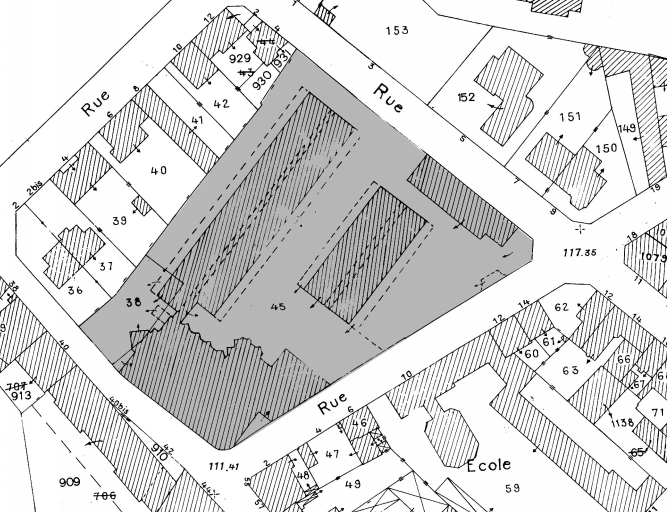 Bâtiment du générateur rue A. Chanzy, plan du rez-de-chaussée, AM Fougères 5J 2-40. Hygiène et santé. Plans de maisons particulières dressés par le bureau d'hygiène (1928).