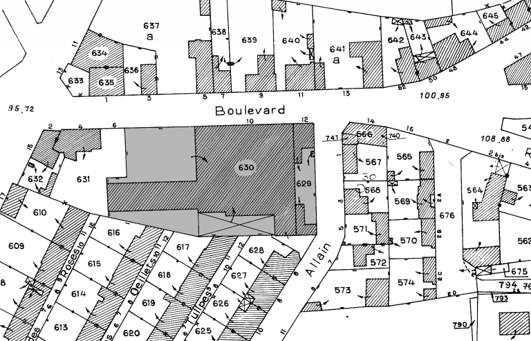 Propriété Réhault, 5 boulevard Charles Tillon, coupe transversale, AM Fougères 5J 2-31. Hygiène et santé. Plans de maisons particulières dressés par le bureau d'hygiène, architecte H. Pinel (1924).