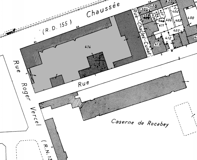 Usine à gaz à établir au Chemin Pavé, plan de situation, AD Ille-et-Vilaine 5M 276. Logements et établissements insalubres. Usine à gaz, chemin Pavé (1912).