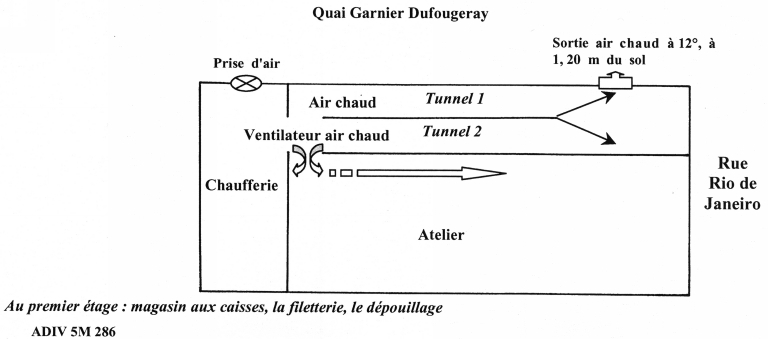 La Morue Bretonne, plan général, AD Ille-et-Vilaine 5M 286. Logements et établissements insalubres. Fabriques de produits alimentaires : ateliers de sécherie de morues (1951 ?).