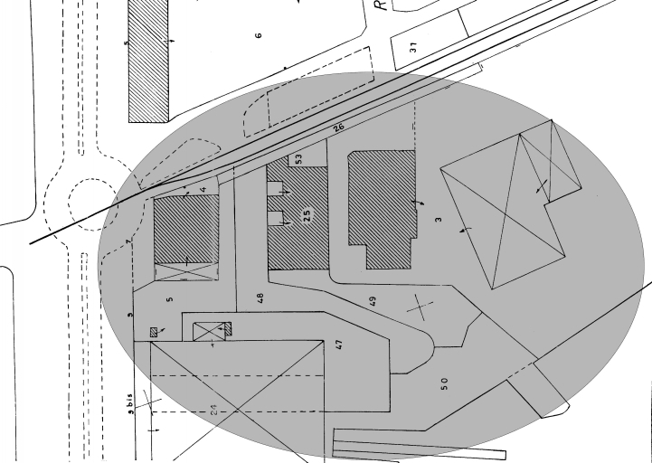 Parties constituantes non étudiéesatelier de fabrication, entrepôt industriel, magasin industriel, bureau, cale, cale de construction, voie ferrée