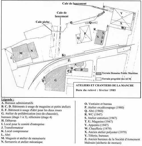 Appellationsusine de construction navale Mougin Baslé, puis sécherie de morues La Morue Bretonne, et usine de construction navale dite la Siccna, puis Ateliers et Chantiers de la Manche, puis Saint-Malo Naval, actuellement Gec-Alstom Leroux-Naval
