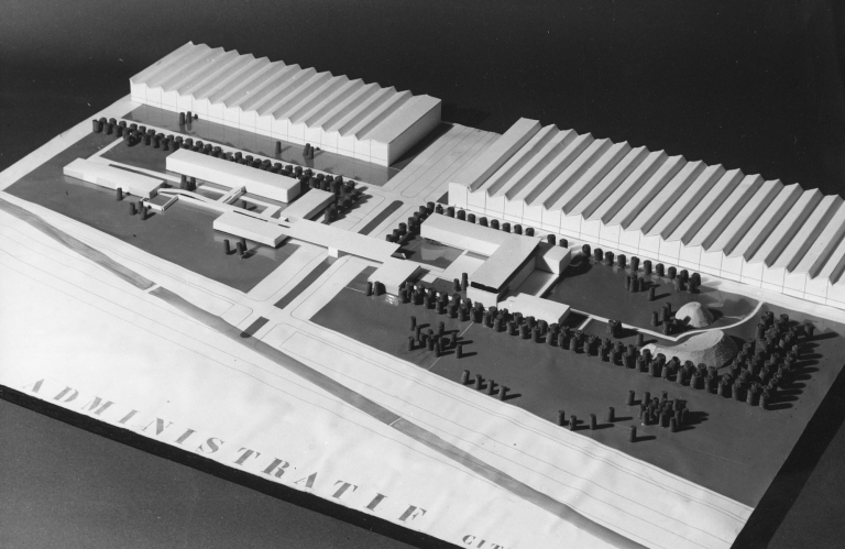 AM Rennes 8Z 146. Usine Citroën de la Janais. Construction des bâtiments administratifs. Plans, photographies de maquette et de chantier (1960-1961).