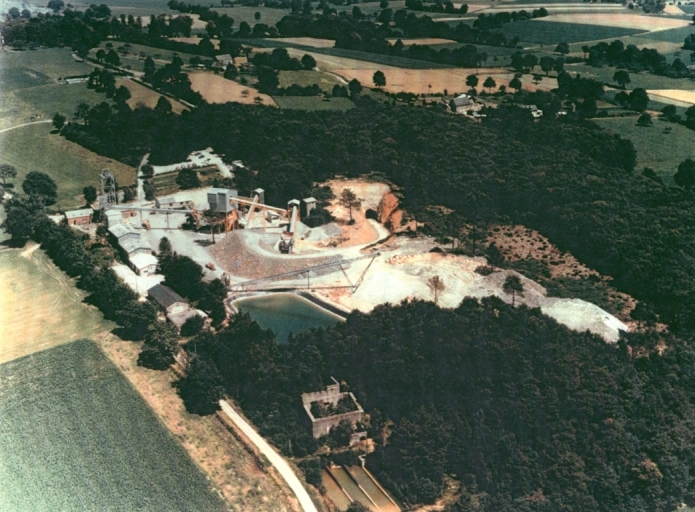 Mine de Montbelleux, vue aérienne, BODIN, J.-M. (dir.). La mine de Montbelleux 1903-1983, Luitré (Ille-et-Vilaine) . Rapport dactylographié, sd.