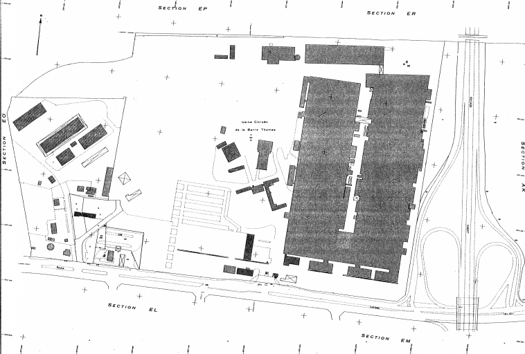 C'est dans le cadre de la décentralisation que la société Citroën décide d'implanter, à la Barre Thomas, une usine de roulements et de pièces détachées en matière plastique dont l'activité débute en 1953. Dès 1952, construction de la cité ouvrière Citroën composée d'un ensemble de vingt pavillons individuels locatifs réalisés par l'OPHLM. Ils sont situés aux abords du boulevard de Vitré et de l'avenue des Buttes de Coësmes, sur un terrain de 3 ha environ où sont ensuite édifiés, dans les années 1955-1958, cent vingt cinq logements locatifs. L'usine est spécialisée dans la production de roulements à billes et de pièces élastomères thermoplastiques (caoutchouc et plastique) destinés aux usines de construction automobile Citroën et Peugeot implantées en France et à l'étranger. Les pièces fabriquées vont des joints d'étanchéité aux soufflets de transmission en passant par les appuis de suspension jusqu'aux raccords de circuits de refroidissement. En 1978, l'usine cesse la fabrication des roulements à billes pour se consacrer uniquement à la production de pièces en matière plastique. L'usine fournit 40 % des pièces des véhicules du groupe PSA. En 1995, elle est la plus importante usine française spécialisée dans la fabrication de caoutchouc automobile, sans compter les pneumatiques. A cette date, sa production journalière qui a doublé depuis 1983, s'élève à six cent mille pièces pour mille deux cent cinquante références. En janvier 2000, PSA Peugeot Citroën quitte l'usine qui est rachetée par le groupe italien Gomma CF, qui exerce la même activité, la production étant achetée par PSA. En 1966, l'usine de la Barre Thomas emploie deux mille salariés et deux mille cents en 1995.