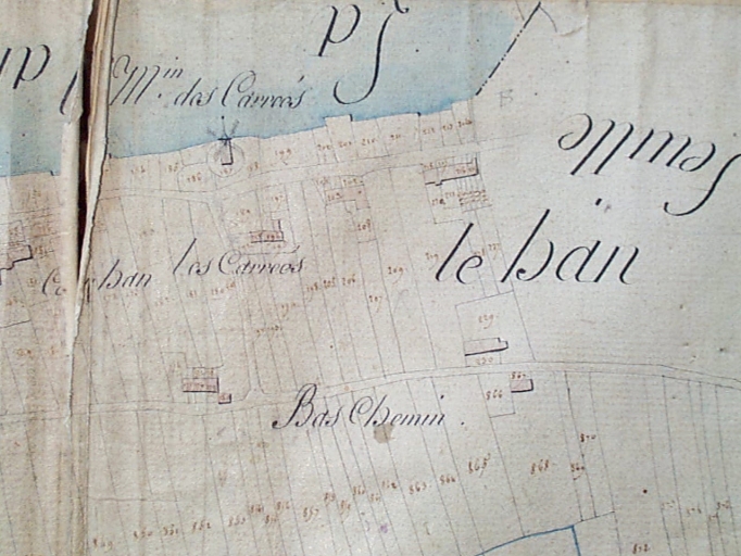Les 'essais' (canaux d´écoulement pour les eaux) : du Pont Alban, des Viviers (visible sur le cadastre ancien), le bied (visible sur le cadastre ancien).