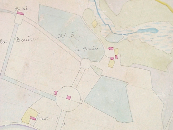 Edifié sur le site d'un ancien manoir, le château de La Bouère n'est pas sans évoquer, dans des proportions plus modestes, celui du Bois-Denats en Bovel et s'inspire comme ce dernier des hôtels péri-urbains de la Restauration. L'édifice était sans doute achevé depuis peu pour figurer sur le cadastre de 1836. C'est une grande demeure de plan carré dont chaque côté présente une élévation ternaire avec un rez-de-chaussée monté sur cave, le tout couvert d'un toit à quatre pans. Les souches de cheminées géminées qui s'élèvent sur chacun des murs de croupe suggèrent un plan triple en profondeur, lequel induit une distribution intérieure organisée autour d'un hall central, à la manière anglaise.