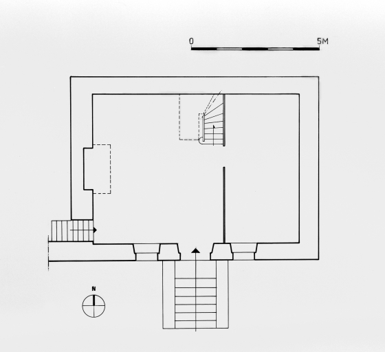 Implanté jadis au croisement de la voie venant de Maxent et du grand chemin qui conduisait de Rennes à Guer, cette maison de type ternaire est sans doute une ancienne auberge. Un perron, élément rare sur les édifices de cette époque, permet d'accéder à la grande salle du rez-de-chaussée montée sur une cave. Une autre pièce sans feu séparée de la première par une cloison de bois était peut être destinée à traiter quelque affaire avec plus de discrétion. L'étage, desservi depuis la grande salle par un escalier de bois, renfermait peut être les chambres des hôtes, car une porte pratiquée dans le pignon ouest assure la communication avec le logis élémentaire mitoyen (aujourd'hui remanié), probable habitation des tenanciers.