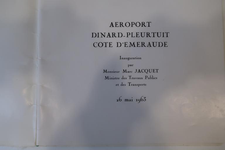 1963 : inauguration de l’aérodrome. Sont mentionnés dans la liste des invités : M. Simon, architecte, Planchet, Lesueur, Cauce, Morel, Videment, Maulion, Chadourne, Degano, Rault, Guerin, miroiteries de l’Ouest, Picot : entrepreneurs.