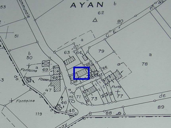 Cet ancien logis de ferme, aujourd'hui en mauvais état, reste intéressant de part son volume et sa haute toiture à coyau. Il intégrait vraisemblablement à l'origine une étable accessible en façade nord juxtaposée à une salle dont l'accès se faisait en façade sud par un petit escalier droit de quelques marches taillées dans le schiste. Il fut ensuite séparé en deux propriétés ; ce qui créa la double orientation visible à l'heure actuelle et amena à la création d'une cheminée dans la partie ouest.
