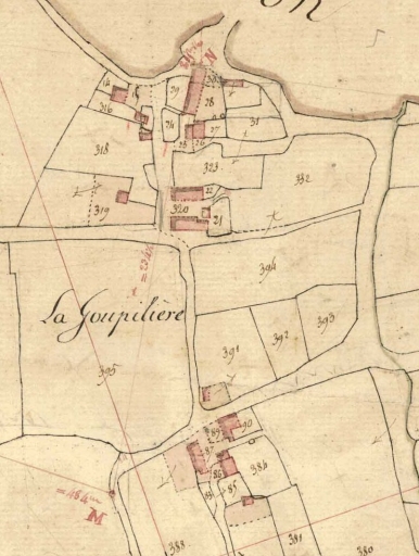 Feuille cadastrale de la section D2 dite de la Chevalais. Levée par Dumesnil, géomètre, [1827], échelle 1/2500e. (A.D. d'Ille-et-Vilaine : 3 P 5383).