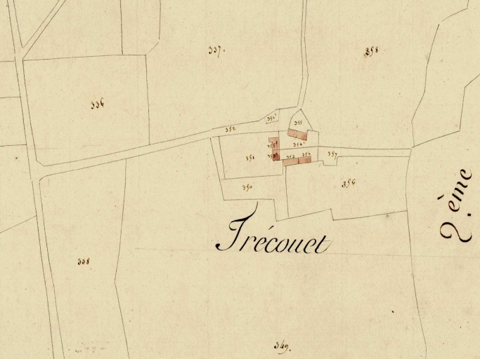Ille-et-Vilaine. Commune de Bains-sur-Oust. Section H dite de Trécouët, feuille 1, plan cadastral napoléonien, échelle : 1/2 000e, par le géomètre Galieur, 15 juin 1846. (A.D. Ille-et-Vilaine : 3 P 5245).