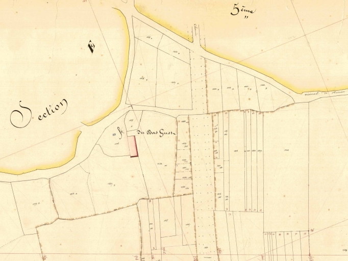 Plan cadastral dit napoléonien. Section E dite de la Touche, 6e feuille du n°1155 au n°1290, échelle 1/1000e, levée Par Simon Géomètre, 1843.. Archives départementales d'Ille-et-Vilaine, Rennes.
