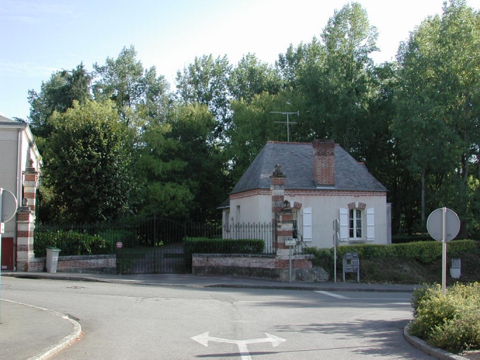 Portail d'entrée en brique et tuffeau. Conciergerie de type pavillon, gros oeuvre enduit, génoise en brique.