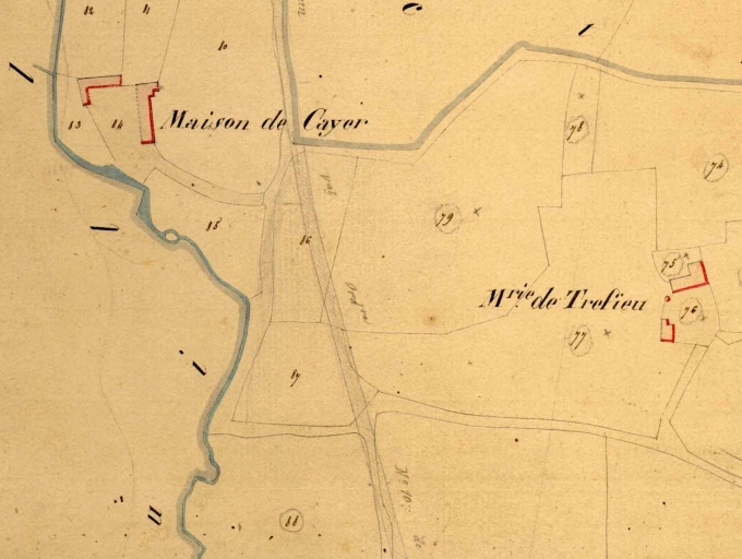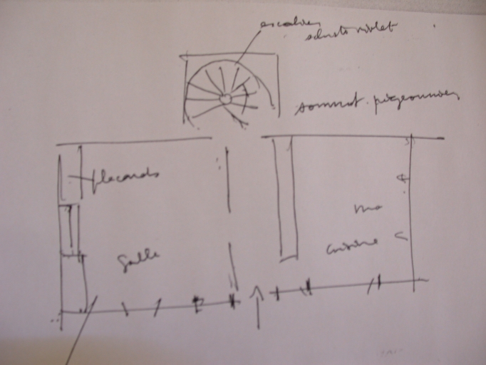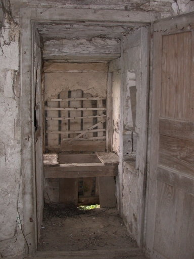 Tour d'escalier arrière hors oeuvre recouverte d'une toiture en pavillon. Encadrement des ouvertures en pierre de taille de schiste et en pierre de taille de calcaire.Parties agricoles en moellons de schiste et terre.