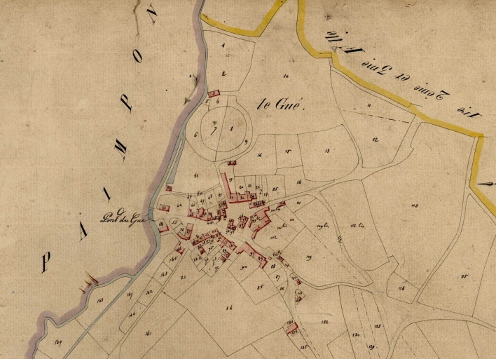 Feuille cadastrale de la section G3 dite du Gué, par Lesné géomètre, [1823], échelle 1/2500e (A. D. d'Ille-et-Vilaine : 3 P 5438).