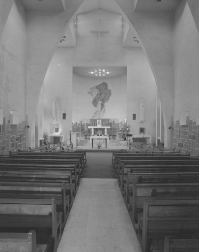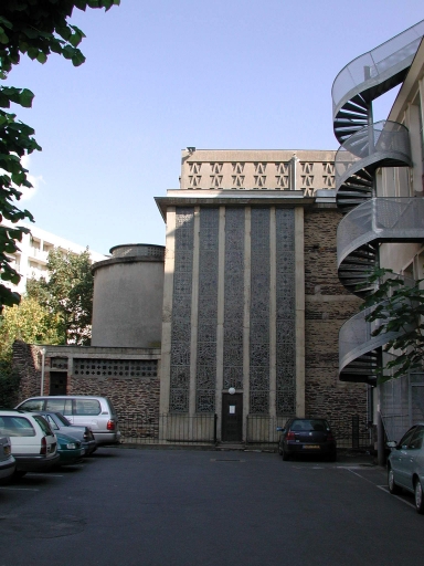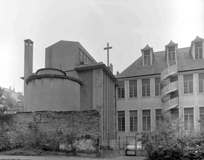 - PINTE Cette chapelle, qui remplace un édifice détruit, est l'une des deux grandes créations de Louis Chouinard, dans le domaine de l'architecture religieuse, avec l'église de Bruz. En plaçant la façade en retrait d'un petit parvis à emmarchement, l'architecte utilise avec habileté l'espace réduit de cette rue étroite. Le retrait permet une mise en perspective et une mise en valeur de la dimension graphique et sculpturale de l'édifice pourtant visuellement réduit à une façade, étant donnée son implantation mitoyenne. A signaler les vitraux réalisés par les ateliers Loire à Chartres.