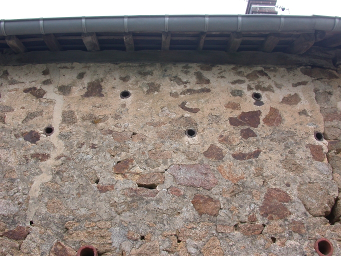 Gros oeuvre en moellons de granite. Lucarnes en plein cintre avec brique dont une avec du calcaire.