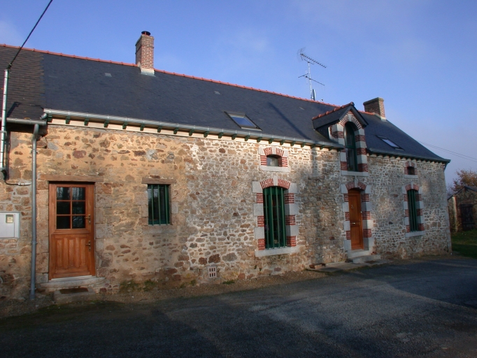 Plan allongé. Parti bas avec lucarne pendante. Gros oeuvre en moellons de granite. Les encadrements des baies sont en pierre de taille de granite gris et de brique pour le nouveau logis.
