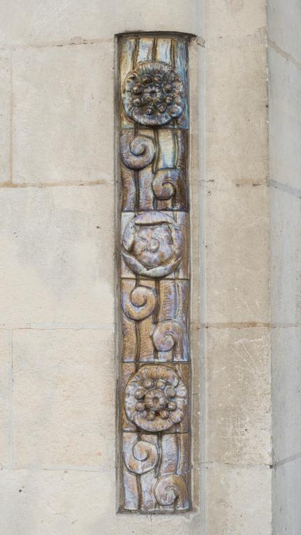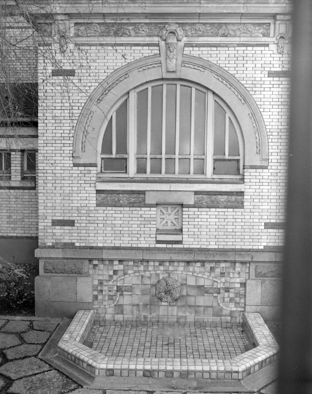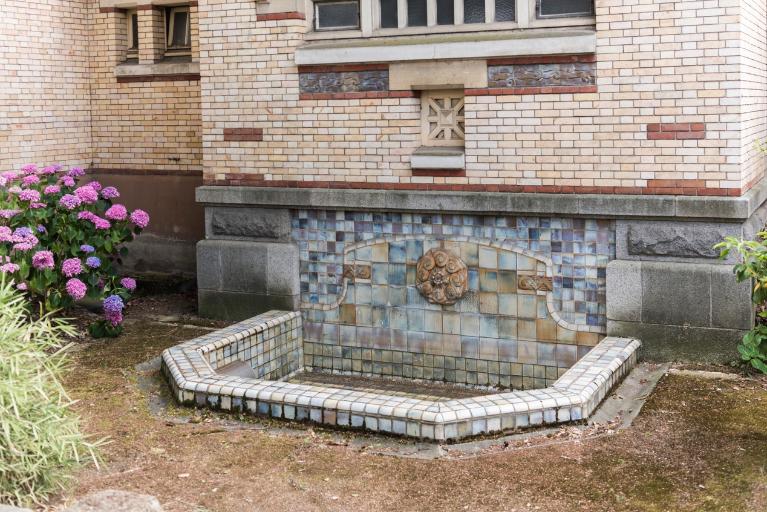 La seule intervention expressive du célèbre céramiste se trouve dans la frise de vaguelettes et de volutes qui orne le pourtour du bassin. Réalisée dans des nuances de bleus et de verts avivées par des tonalités jaunes et brunes, elle semble accompagner le mouvement et les clapotis de l´eau.