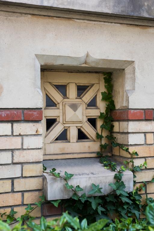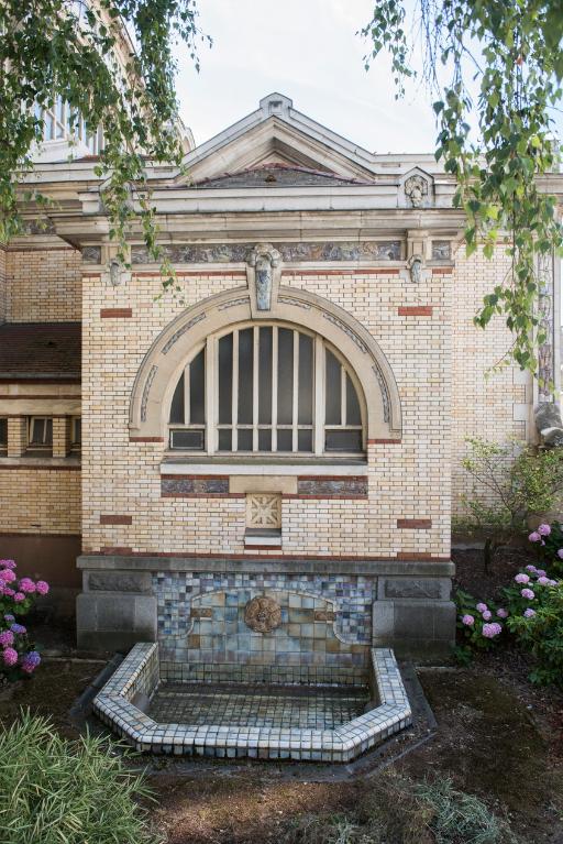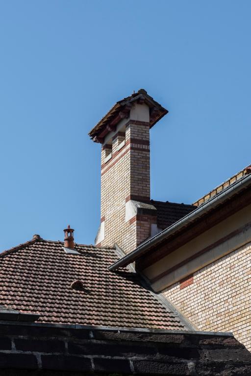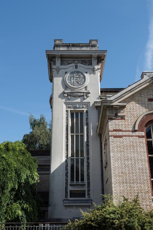 Les élévations extérieures jouent sur la diversité et sur la polychromie des matériaux : au dessus d´un soubassement de granite appareillé en pierre de taille, le parement de briques jaunes de Hollande est animé par des bandeaux de brique rouge, des éléments de tuffeau, de ciment ou des frises de grès ; il est interrompu, sur les façades latérales, par les claustra d´aération en bois peint. Les baies cintrées sont soulignées par des arcs de briques rouges ou des décors de grès. La recherche de pittoresque et d´animation est également sensible au niveau de la couverture réalisée en tuiles de Marseille avec la multiplication des formes et l´étagement des niveaux des toits.