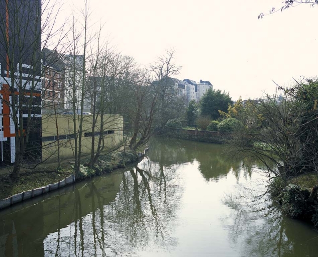 - PINTE La rue de Dinan constitue encore partiellement l'épine dorsale d'un secteur marginal situé aux abords de la ville. Son rôle de voie de communication entraîne une implantation clairsemée du bâti, sauf au niveau de l'ancienne église Saint-Etienne. La rive Est est actuellement entièrement évidée des traces de son occupation d'origine depuis l'ancienne église paroissiale jusqu'au pont Saint-Martin (à l'exception d'une dépendance transformée en maison à l'angle de la rue Gaston Tardif). Le percement de la rue Legraverend aura contribué à marginaliser toute la partie nord peu à peu déstructurée et reconstruite. La rive Ouest, occupée par des établissements industriels au 19e siècle, ne conserve que des traces ponctuelles d'habitat antérieur au 18e siècle. Cet axe qui n'est pas devenu un faubourg, n'a pu assurer sa connexion avec la ville au 19e siècle et reste aujourd'hui en arrière-plan du centre-ville dont il est cependant si proche.