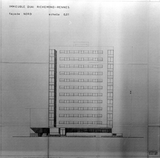 Immeuble, quai de Richemont. Elévation de la façade nord, plan d'exécution (A. C. Rennes).