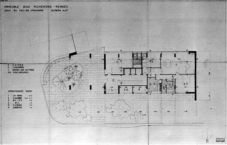 Immeuble, quai de Richemont. Plan type OUEST, plan d'exécution (A. C. Rennes).
