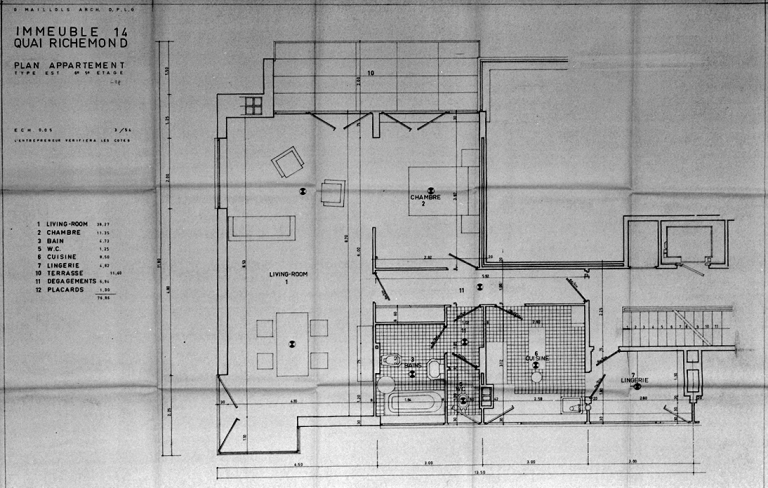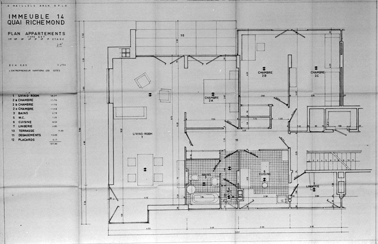 Immeuble, quai de Richemont. Plan type EST, plan d'exécution (A. C. Rennes).