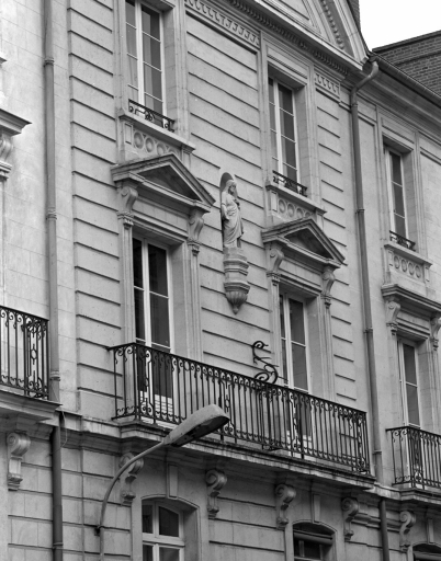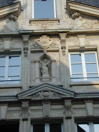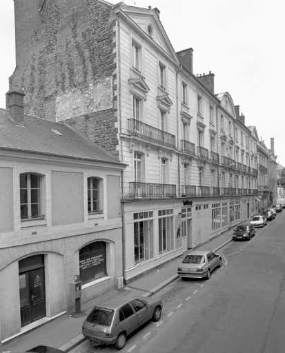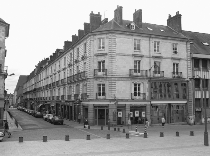 Ces immeubles forment ainsi un ensemble concerté unique à Rennes. Le choix typologique d'édifices derrière façade témoigne d'une volonté de structurer fortement ce nouveau site de centralité. Les compositions à 23 travées (rive ouest de la rue Hoche), à 12 travées (5 et 7 rue des Fossés) ou à 11 travées (1 et 3 rue des Fossés) sont parmi les plus importantes réalisées à Rennes. Ces immeubles, dont la façade sur rue est en pierre de taille, sont agrémentés d'un décor sobre mais élégant (balcons, frontons, niche à statue) et font l'objet d'un traitement d'angle qui prolonge ainsi l'ensemble au niveau des axes voisins ; ils proposent une forme de monumentalité basée sur la cohérence d'un front urbain et non sur un relief accentué des façades, comme c'est le cas à la fin du 19e siècle. La position du couvent, encastré dans un jeu de constructions à usage de commerces et d'habitation, prouve elle aussi l'importance des immeubles à boutique comme outil de structuration de l'espace urbain.