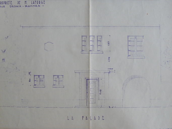 Propriété de M. Laforge, façade sur rue, dessin d'exécution, par E. Laforge, 1949 (A.C. Rennes).
