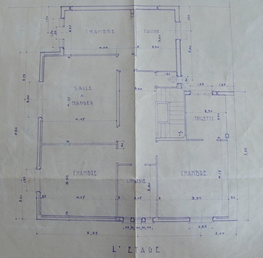 Propriété de M. Laforge, plan de l'étage, dessin d'exécution, par E. Laforge, 1949 (A.C. Rennes).