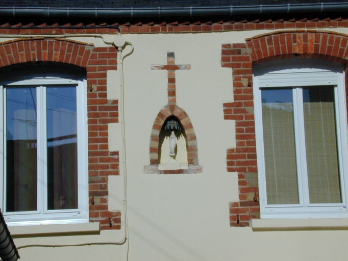 Une niche avec une statuette est ménagée dans la façade de l'ancienne maison. Le magasin sur rue a été transformé en logement.