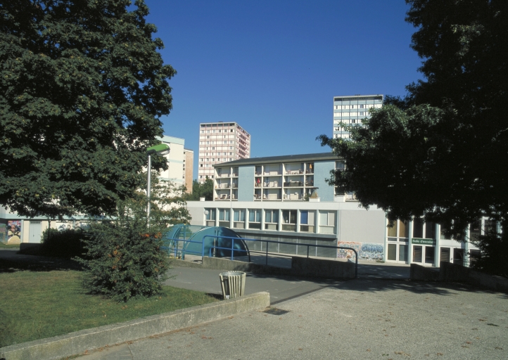 Secteur urbain à trame irrégulière structuré par 3 voies larges limitrophes et traversante (boulevard Emmanuel-Mounier). Equipements de quartier en position médiane suivant un axe est-ouest, à l'extrémité duquel se situent les deux centres commerciaux, construits en bordure des axes existants (rue de Trégain et avenue du Général-S.-Patton). Important délaissé de voirie au nord, résultant de l'orientation différente de la voie large et de l'implantation du bâti, affecté au stationnement. Le groupe scolaire au centre du quartier s'intègre à la composition forte du groupe du Gros-Chêne qui se distingue des cités disposées en grappe le long de la rue de Trégain. Eglise construite en position périphérique.